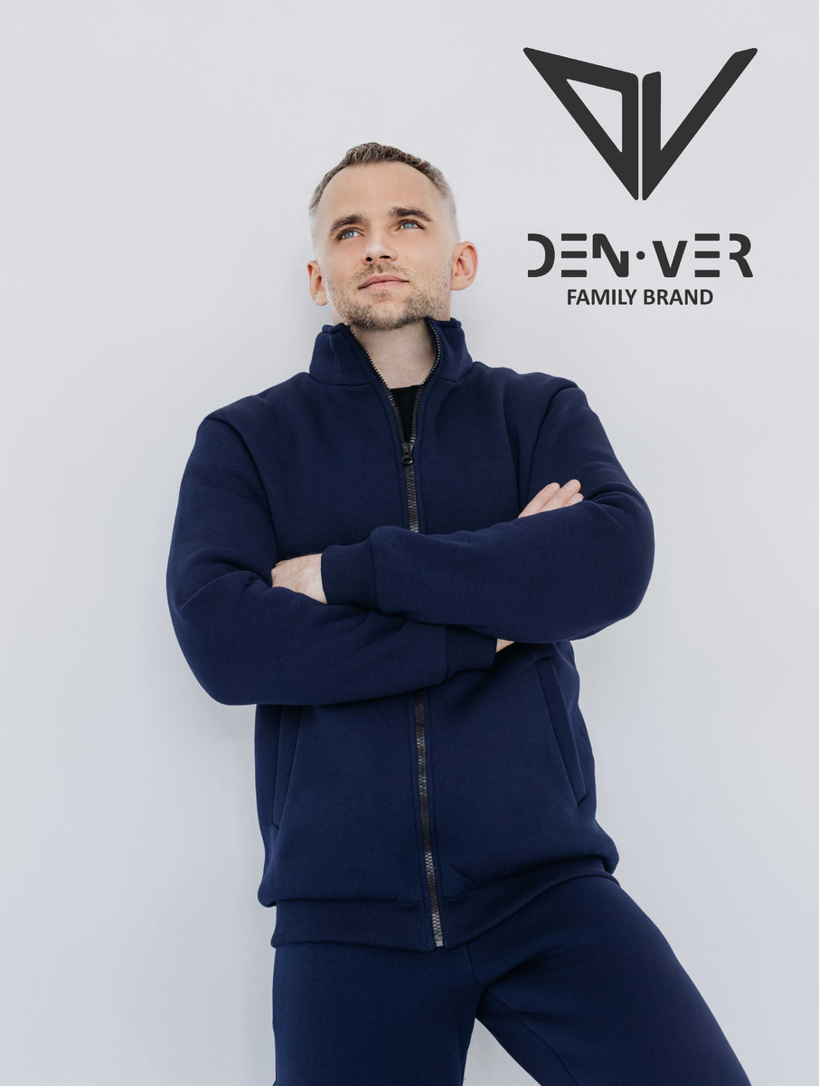 Трикотажная толстовка с начесом, закрытым подкладом-сеткой, на молнии, без капюшона, с воротом-стойкой от бренда одежды DENVER.