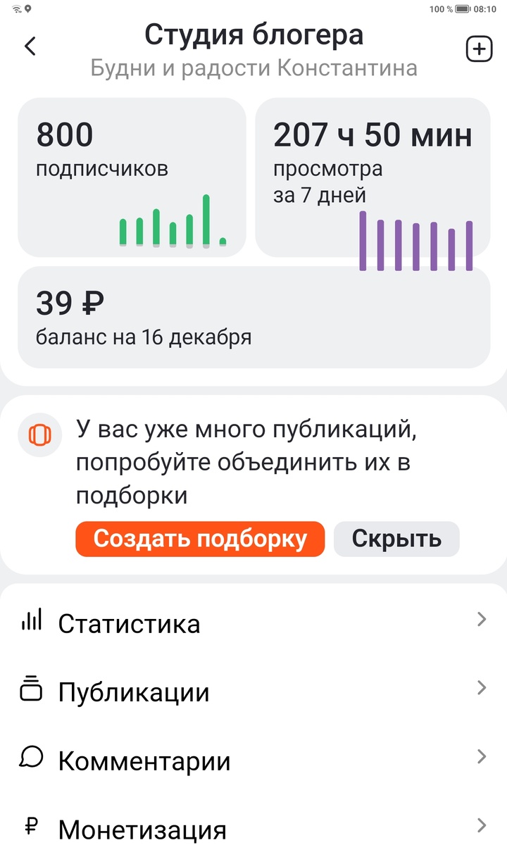 Сегодня в моей студии блогера 800 подписчиков, 800 моих друзей! Спасибо вам.