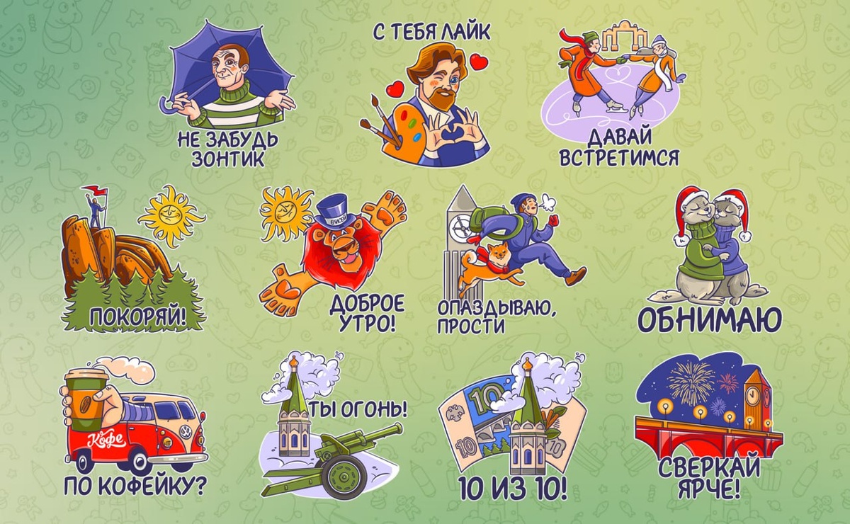 Например, если вы куда-то опаздываете, то можно отправить стикер с Биг-Беном и фразой «Опаздываю, прости».