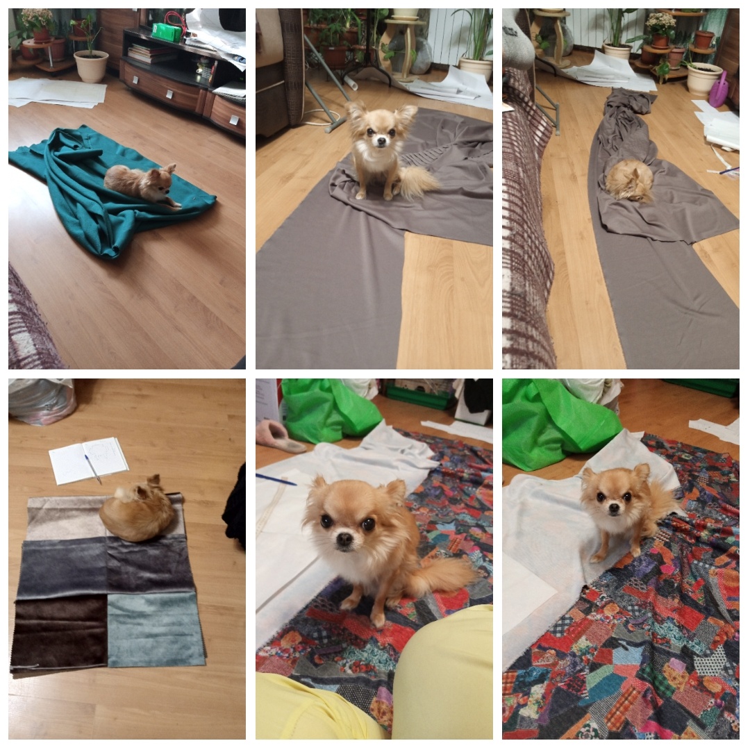А вас есть помощники? Неважно кто и в чём они помогают. У меня например есть. Это наша Бусинка. Стоит мне только достать ткани и расселить, как она тут как тут. Придёт, сядет и смотрит на тебя предаными глазами. А если не обращаешь внимание, то ляжет и будет спать, прям на этой же ткани. И это только часть того сколькоона мне помогает. Пишите в комментариях, кто и как вам помогает.