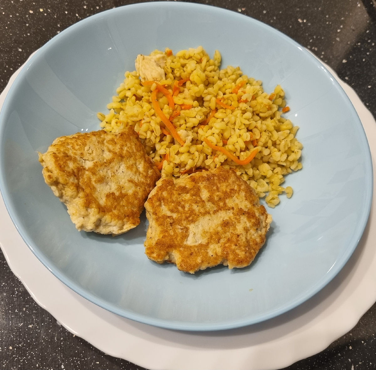 Осталось у меня после экспериментов с аэрофритюрницей одно большое куриное филе, а на ужин хотелось уже чего-то менее запеченного. Кусочками курицу делала недавно, да и есть у меня человечек, который все куски выбирает и оставляет на краю тарелки, а вот в виде фарша может и проскочить))) Итак: