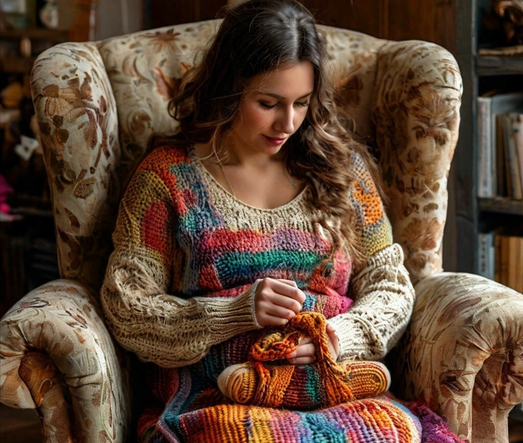 Ирина была дома. Сидела в кресле и вязала. Такая милая, уютная и домашняя...