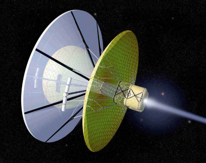 Может ли свет выступать топливом? Как работает фотонный двигатель? До каких скоростей позволит разогнаться «свет»? И какие проблемы мы встретим при создании ФД. Обо всём этом, в сегодняшней статье я попытаюсь рассказать не только научно, но и просто. Принцип действия. В ходе реакции, которая будет протекать за специальным «зеркалом» (которое будет отражать, пагубное для человека и нагрузки, излучение) мы будет получать фотоны, которые и будут ускорять корабль. Свет как топливо: Хоть свет (фотоны) и не имеет массы, он имеет импульс, который можно использовать для разгона аппарата. То есть, имея импульс, поток фотонов сможет создавать реактивную тягу. Это будет очень слабый, но крайне эффективный двигатель, так как скорость истечения из сопла будет равна скорости света. Как получать этот самый «свет»? А на самом деле нам нужен не свет, а именно фотоны, которые будут выступать не топливом, а «продуктом», который будет разгонять на КА. Теоретически их (фотоны) можно получить двумя способ