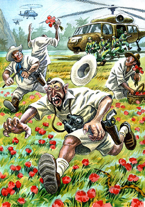 По оперативной информации бразильских и американских спецслужб, крупнейшая плантация опиумного мака в приграничном районе площадью около 3 тысяч гектар принадлежит картелю дона Рафаэля Перона. Здесь же находится хорошо охраняемая база бандитов, именующих себя партизанами, и завод по производству наркотиков. Именно отсюда осуществляется доставка большей части наркотиков на территорию Бразилии.
