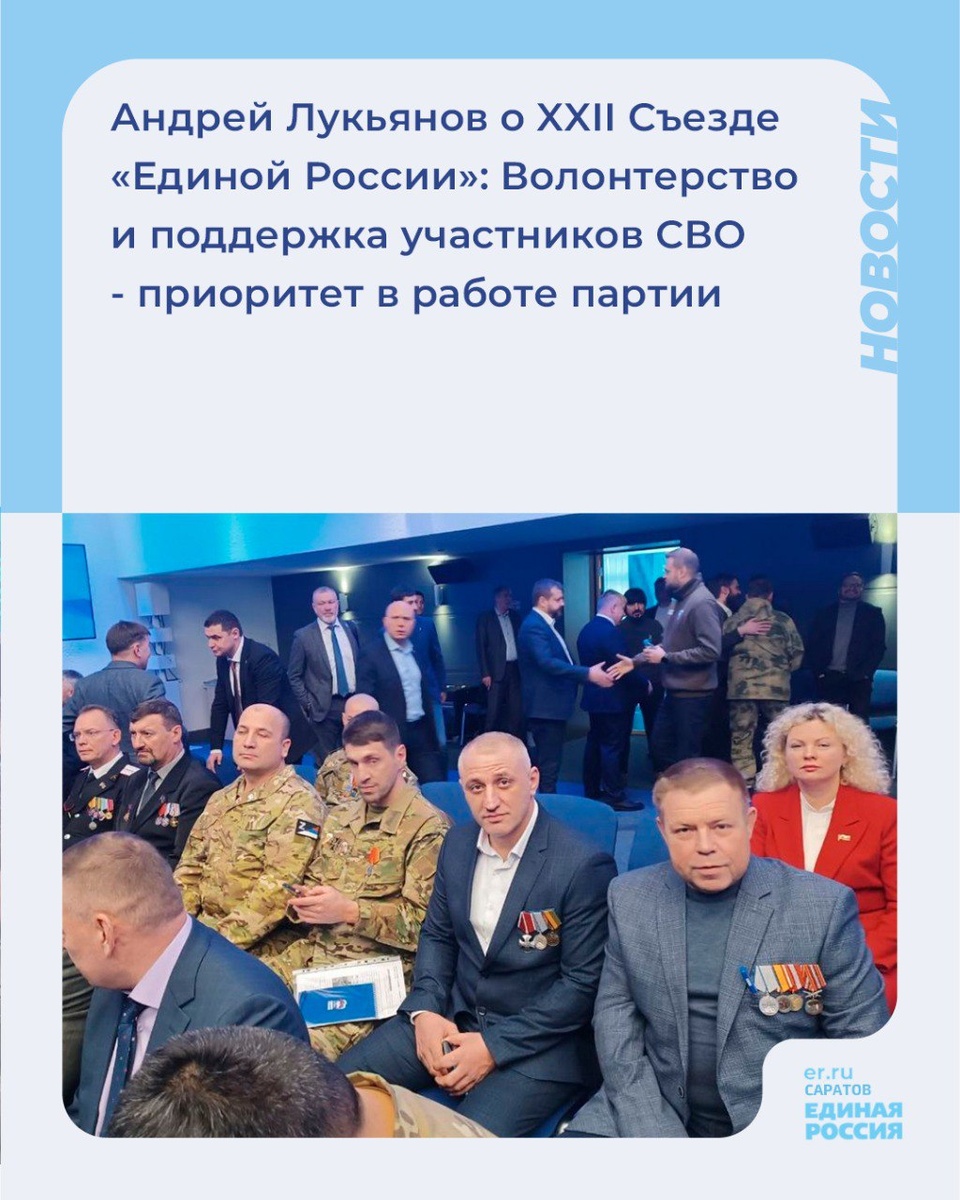 ✅Андрей Лукьянов о XXII Съезде «Единой России»: Волонтерство и поддержка участников СВО - приоритет в работе партии