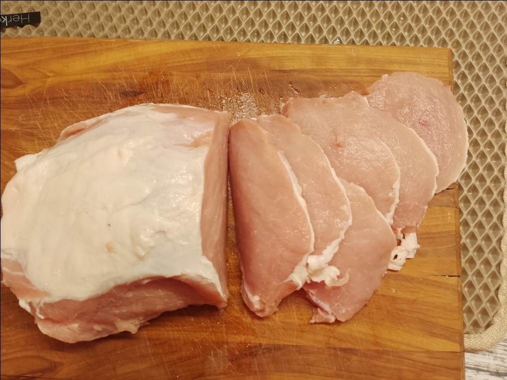 Мясо порежьте впоперек волокон на кусочки толщиной около 1 см. Получится 15 кусочков.