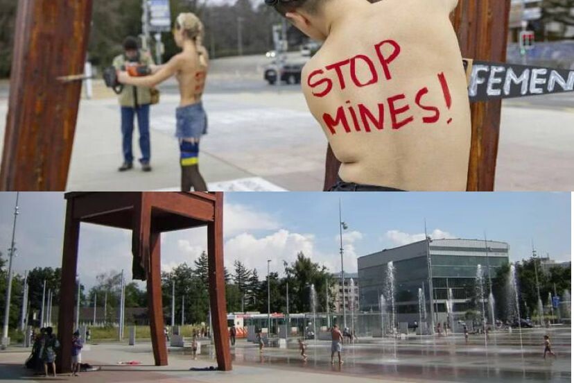 Активистки украинского движения Femen бензопилами попытались распилить памятник «Сломанный стул» – символ борьбы с противопехотными минами, который установлен перед штаб-квартирой Организации объединенных наций в Женеве. Власти Швейцарии резко осудили «низменное» поведение двух полуголых девиц и потребовали немедленно покинуть страну. Об этом сообщило агентство Reuters. Инцидент произошел вечером 13 декабря. Четыре полуголые активистки движения пришли с бензопилами к мемориалу «Сломанный стул» и попытались отпилить ножки. При этом, они постоянно выкрикивали: «Фак Раша», позировали прессе и проходящим мимо людям. Все девицы были задержаны и доставлены в полицию, где на них составили протоколы. В ходе опросов задержанные пояснили, что своей акцией они выражали протест против членства России в ООН. Власти Швейцарии эту «патриотическую» выходку не оценили и потребовали немедленно выехать за пределы страны. Генсекретарь молодежного крыла швейцарского «Демократического союза центра» Энзо Мал
