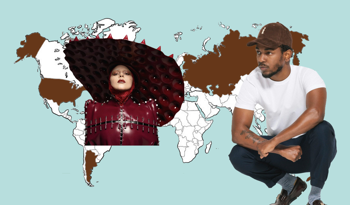 Раз в месяц я собираю три топовых трека из разных стран мира, чтобы на зацикливаться на одних и тех же артистах популярных в Европе. Данные беру со спотифая (они публикуют ежедневные списки топ-50 для каждой страны) или альтернативных источников. если чарты споти для страны недоступны (как например для России - тут смотрю на топхите). Чтобы послушать треки с ютуба в некоторых территориях нужно обойти блокировку. Начну с США, где после Грэмми я ожидал увидеть какие-нибудь большие поп-хиты, но там сейчас слушают только Кендрика Ламара. Он сначала набрал кучу статуэток на церемонии, а потом ещё и выступил на американском Суперкубке. В итоге в топ3 видим две песни с недавнего альбома GNX, и майский хит Not Like Us, который на Грэмми наградили аж пять раз (он забрал главные номинации запись года и песня года). Особо мелодичных песен в Южной Америке тоже ожидать не приходится. Здесь артисты остаются верны своим местным танцевальным ритмам, поверх которых читают текст. Во всём топ-50 нет ни