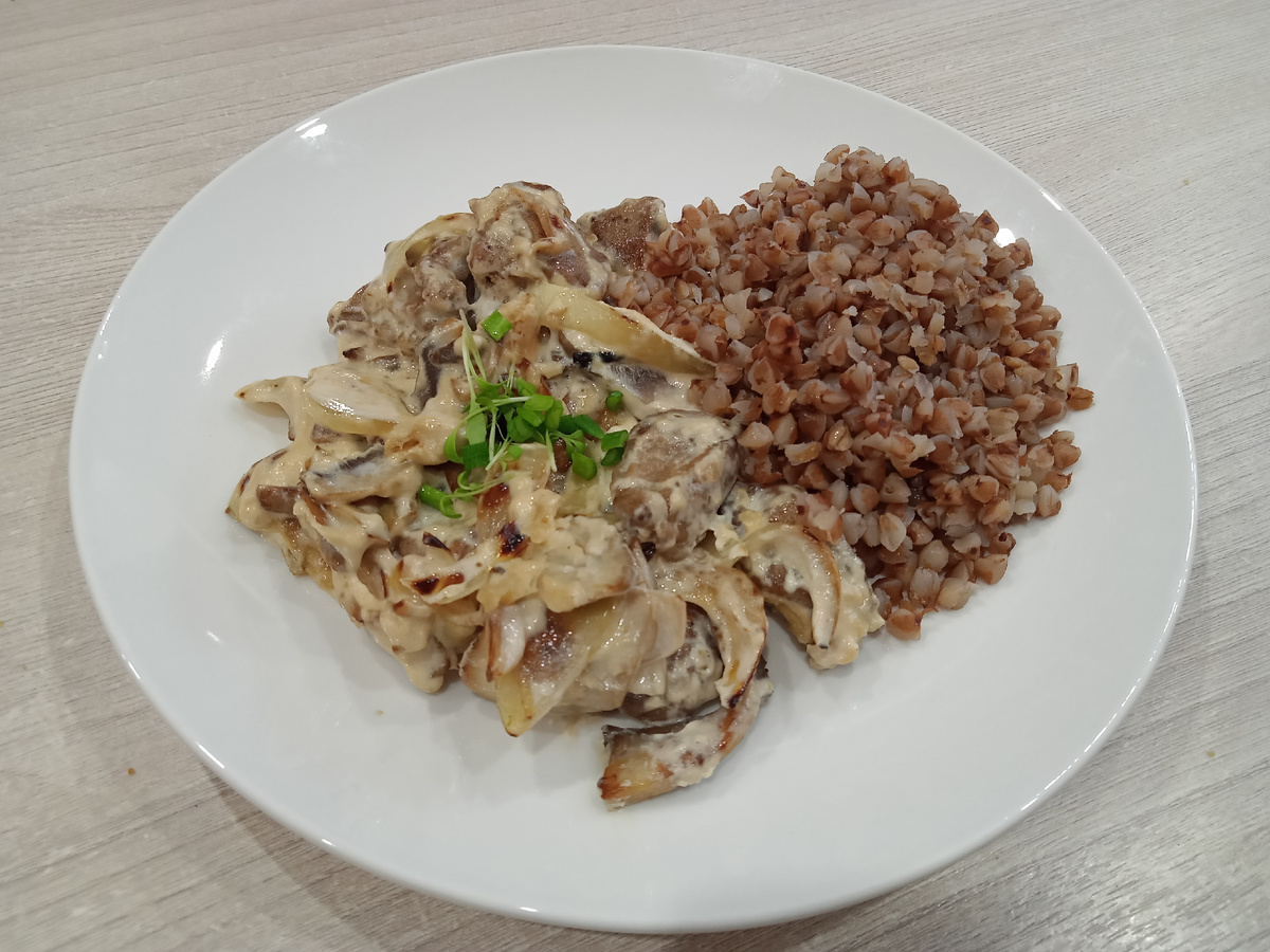 Печень по-строгановски со сливками на сковороде рецепт