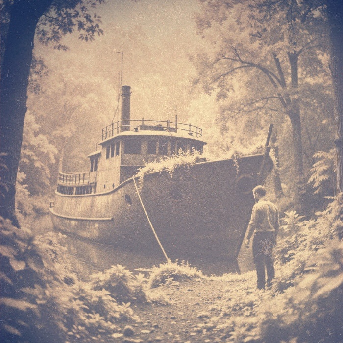 В 1932 году, из порта Монреаль вышел пароход с людьми на борту. Это было небольшое путешествие по Атлантическому океану, но, видимо, пошло что-то не так, и корабль пропал, пропал навсегда. То ли с пароходом сотварило шутку, его название "Lost in the abyss", которое переводится как "пропавший в пучине", либо пароход попал в Бермудский треугольник. Уже после неудачных поисков парохода, на протяжение многих десятков лет, пропавшее судно видели много раз, но, как ни пытались к пароходу добраться, он в мгновение исчезал, а потом уже привыкли к такому явлению. Мираж – пароход стал призраком для всех морских капитанов и матросов, но то, что произошло дальше, это уже не входит в рамки понимания. Случилось то, что никто не ожидал. Где-то в лесах Норвегии в 1968 году обнаружили в реке ржавое судно, пришвартованное на толстый канат. Это был параход, весь поросший травой, ржавый и неухоженный. Власти Норвегии точно знали, что параход не принадлежал им, поэтому сделали запросы с фотографиями судна