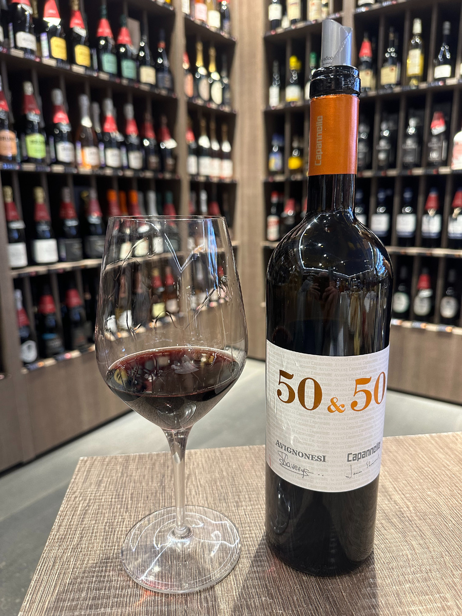 Фифти/Фифти.. пятьдесят на пятьдесят. Очень необычное название для вина из Тосканы. Так кажется на первый взгляд, пока не узнаешь его историю. Такая идея пришла в голову хозяину Capannelle Рафаэлю Розетти.