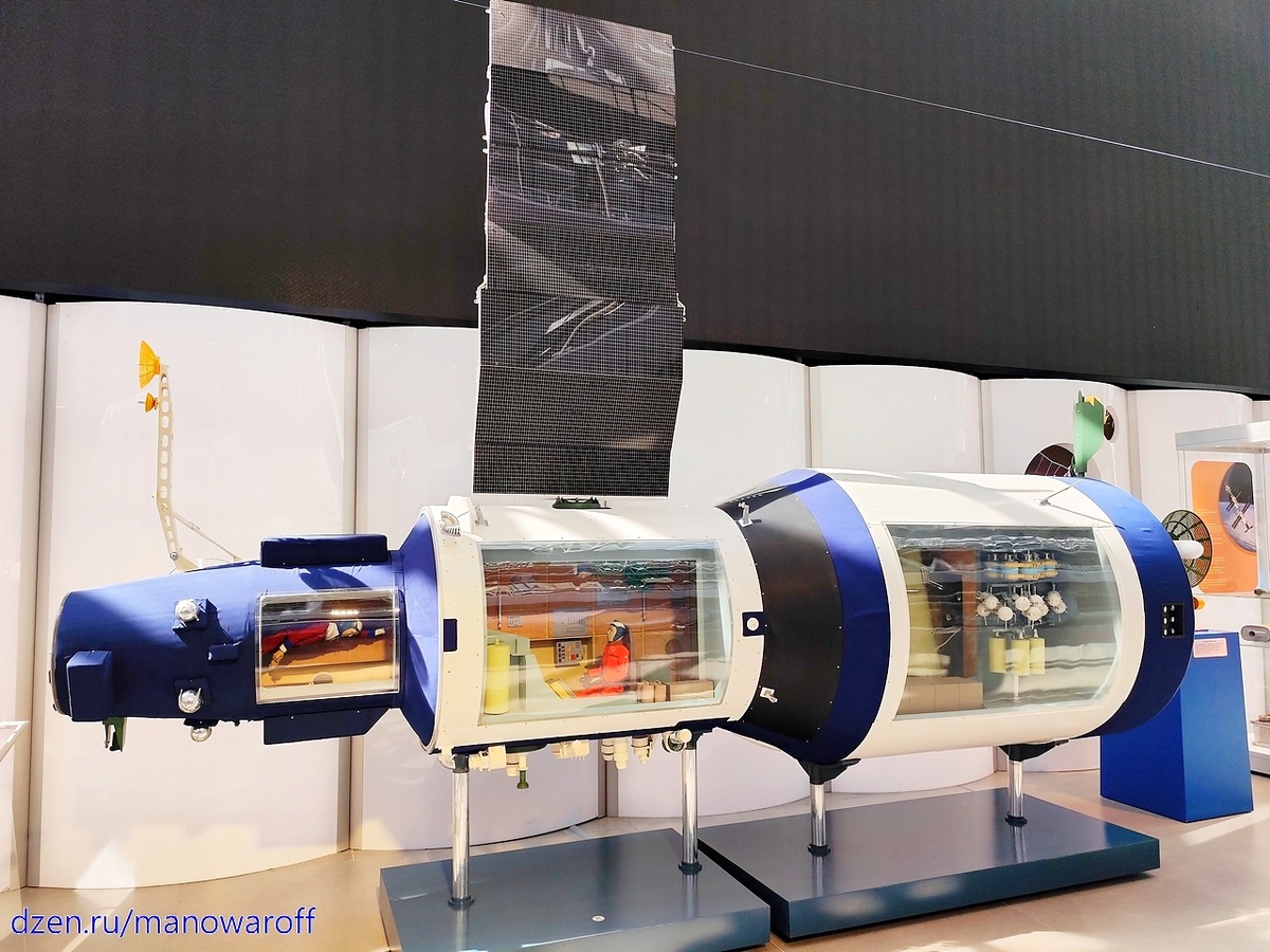 Закончим экскурсию по музею космонавтики осмотром орбитальных станций. Они там не в натуральную величину, разумеется, а в виде уменьшенных копий.