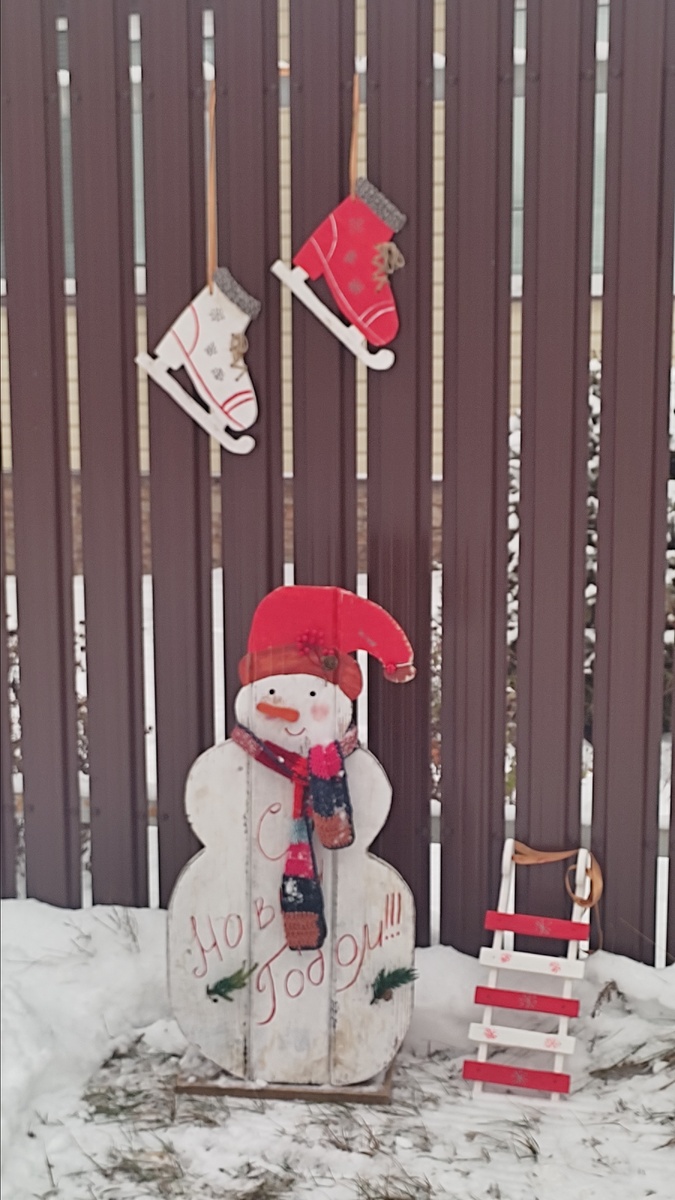 Доброго дня всем! Сегодня закончила украшать улицу. Хочется, чтоб праздник чувствовался уже на подходе к дому. Около калитки, как в том году, у меня встал охранник. Деревянный снеговичок, с коньками и саночками. На калитку повесила еловый букет в мешочке из мешковины. Входная зона готова. Перед калиткой растёт десятилетняя лесная ель. Я еë каждый год стригу и добилась того, что она пушистая и аккуратная. Ëе украсила шариками. На навес закрепили гирлянду. А оттепель развесила сосульки. На дверной глазок прикрепила рождественский венок. Глазок я слегка откручиваю, вешаю за ленточку венок и опять закручиваю. А с внутренней стороны двери - дедок. В голове засела мыслишка заменить инородную надпись на "С Новым годом!", думаю как это сделать😅. Как же волшебно всё это смотрится! Хочу рассказать забавную историю. Самые внимательные читатели наверное заметили, что подкова около двери на разных снимках висит по-разному😊. Дело в том, что изначально мы её повесили рожками вверх, потом
