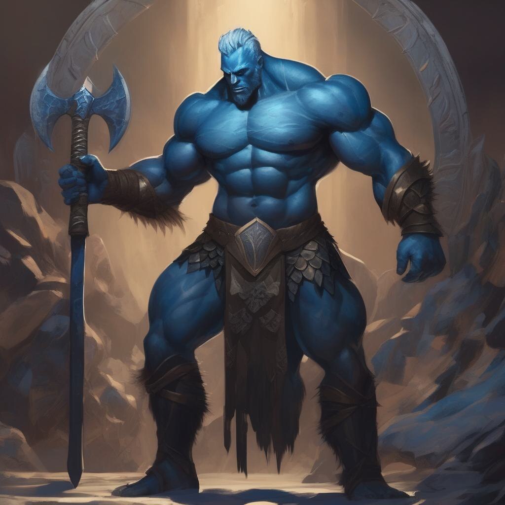 огромными копьями, чтобы он побыстрее шёл на арену жрать синего мужика в