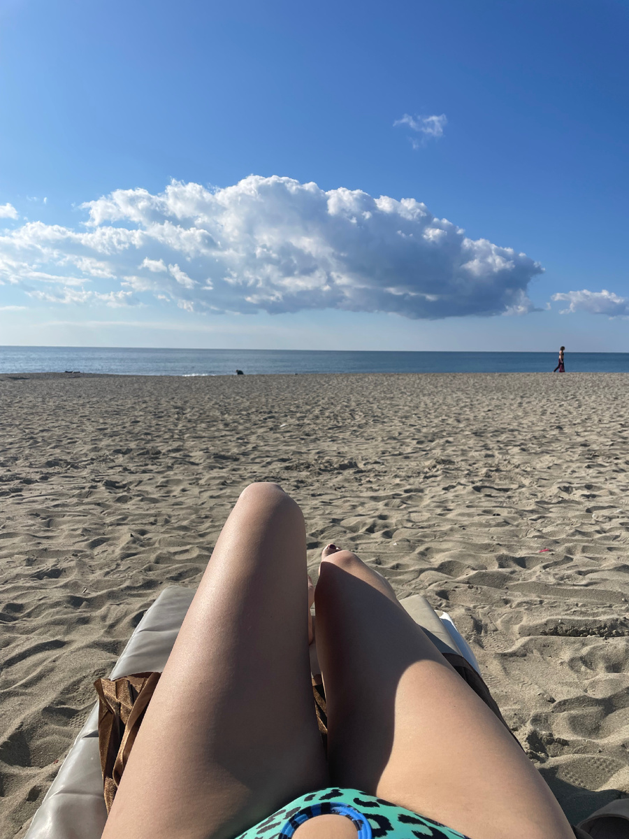 Мне не хотелось уходить с пляжа, потому что было очень тепло, даже жарко, температура +19.