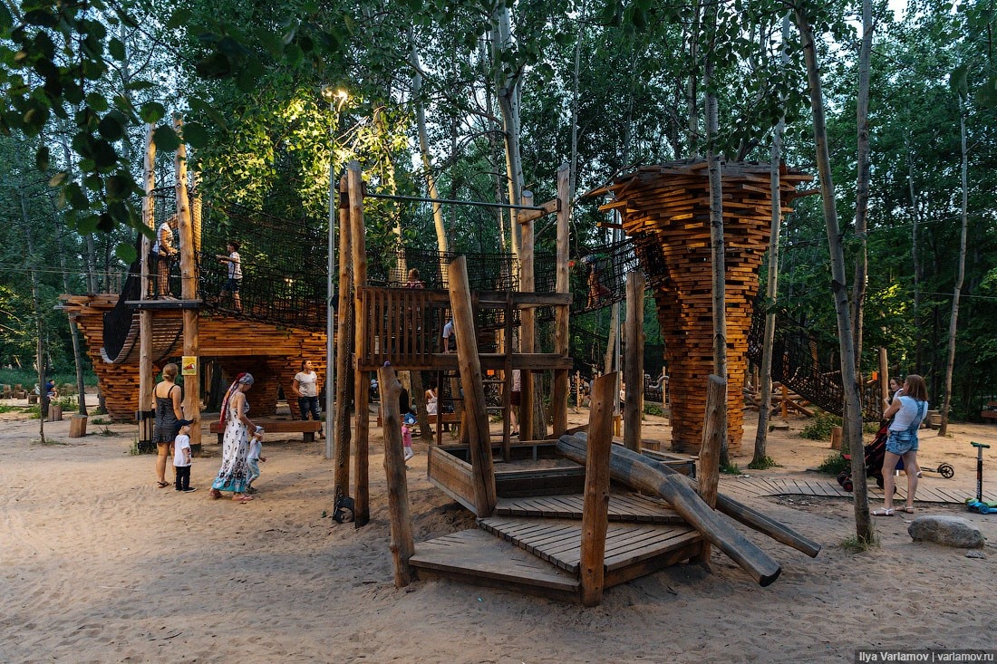 26. Но самое крутое тут — это детскя площадка! Прямо среди деревьев сделали огромный городок с лестницами, веревками, сетками.