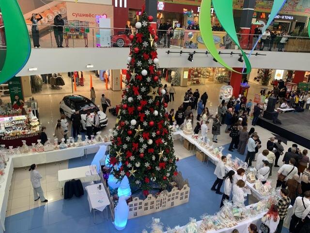 Кондитерские творения, всего их 97, выставили вокруг новогодней елки в центральном атриуме. Даже у самых хмурых горожан от такой "сладкой" картины настроение улучшилось.