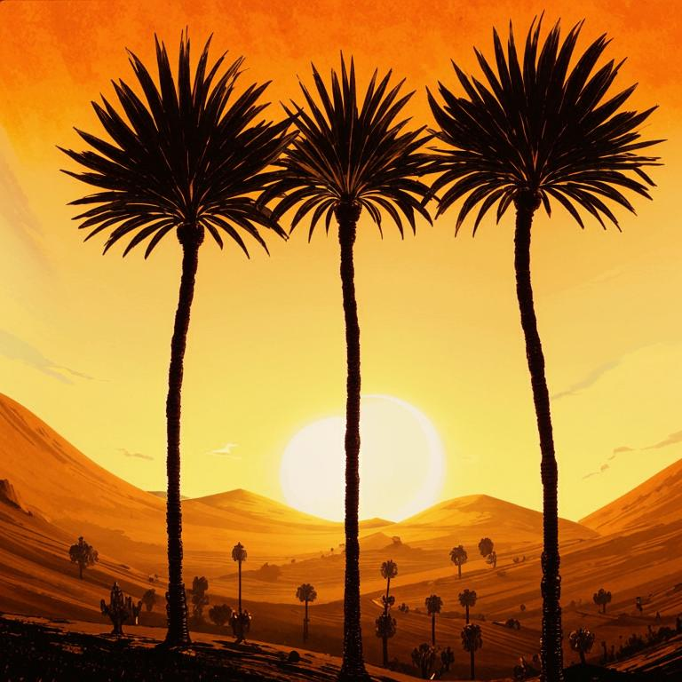 Лермонтов мастерски использует художественные приемы для создания выразительного образа и передачи настроения. Например, в первых строках мы видим эпитеты, такие как «гордые пальмы», которые подчеркивают величие и стойкость этих растений. Сравнения, как в строке «прошли как сон», делают образ времени более ярким и осязаемым.