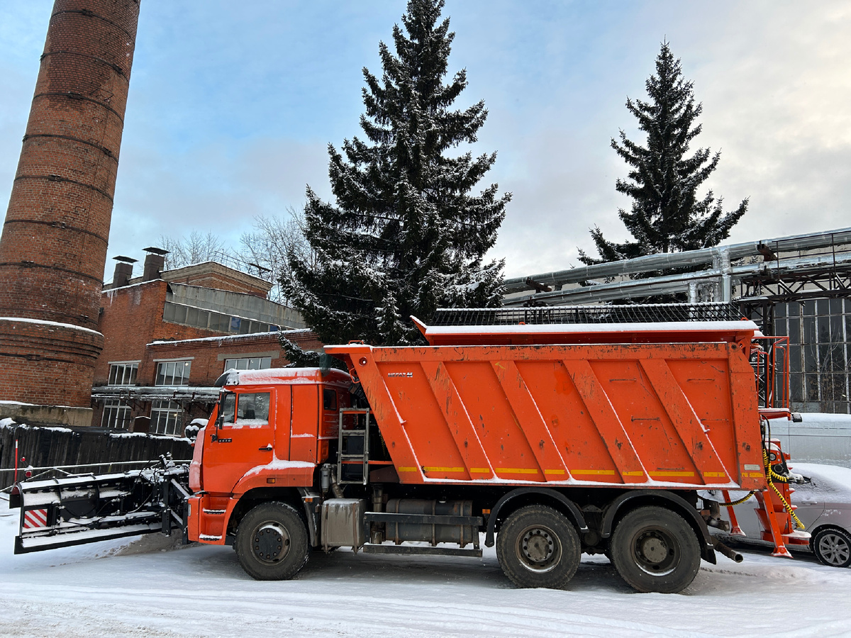 Самосвал КамАЗ-6520 с пескоразбрасывающим оборудованием МОС-10 и отвалом комбинированным 3.5м
