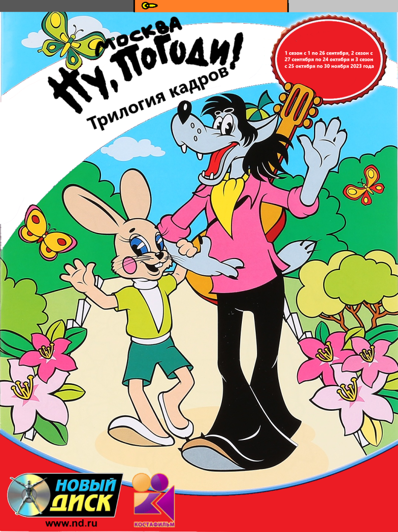 1 сезон с 1 по 26 сентября, 2 сезон с 27 сентября по 24 октября и 3 сезон с 25 октября по 30 ноября 2023 года на телеканале Новый диск состоится премьера нового 91-серийного комедийного мультсериала производства студии Костафильм с рабочим названием «Ну, погоди, Москва, Трилогия кадров!». Песня Ничего на свете нету, Green Grass of Texas и Песня разбойников из мультфильма «Ну, погоди, Москва, Трилогия кадров!».