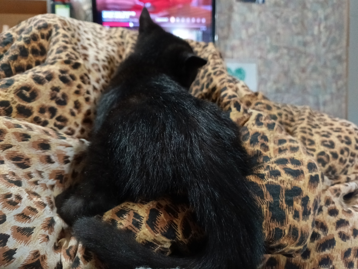 Всем приветик, у нас сегодня - 7 и снег ) Редкая для нас погода, зато сегодня ветра нет. Выспались (я ) и надо идти на рынок. Купили еды, пообщались там со знакомыми, привычно выпили горячий чай из термоса на аллейке. Пришли домой - яркое солнце в окна бьет, пылинки скачут ) Принялась за уборку, потом кормила внучку обедом. Пообщались. Кошка крутилась возле нас, но никто к ней не проявил интереса (у внучки аллергия) и она ушла от нас в маленькую комнату, повернулась ко всем задом и заснула. Поэтому вечером мы ей восполняем социум, сейчас спит возле мужа. В общем, домашние дни скучать не дают, ооочень весело проходят в кавычках ))) Всем уютного вечера )
