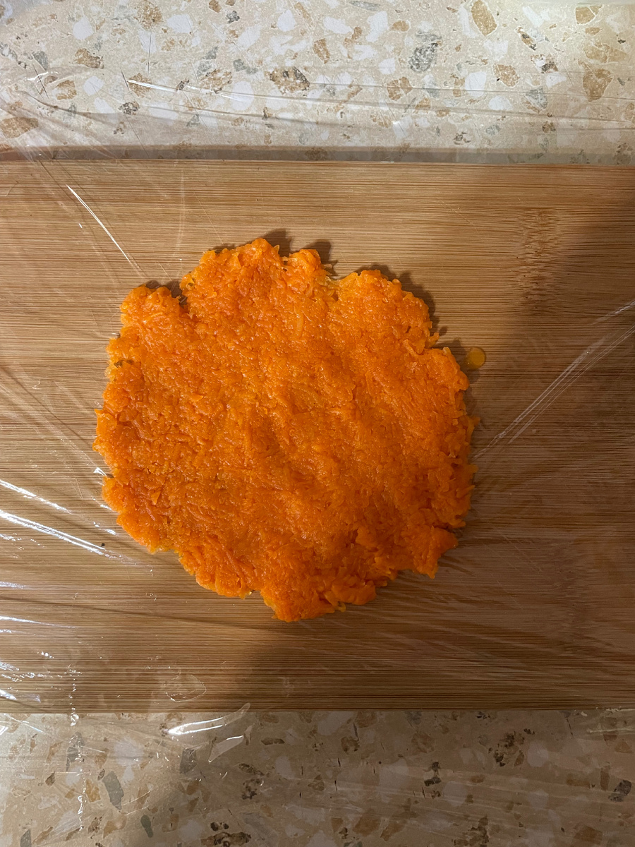 Давно хотела приготовить блюдо по этому рецепту. Но думала, что это сложно, а сложно я не люблю:) Оказалось, показалось. Готовить проще простого! Всем привет!👋 Меня зовут Ольга. Мне 48 лет. Живу в Москве. На своем канале рассказываю, как похудела на 50 кг, с веса 124 кг, и продолжаю худеть. Предлагаю рецепты низкоуглеводных и ПП блюд, с рассчитанным КБЖУ, и немного рассказываю про свою жизнь. Друзья, сегодня поделюсь с вами этим потрясающим рецептом. По секрету вам скажу, мои мужчины были довольные, им эта закуска/салат очень понравилась. Итак, готовим! Филе куриного бедра-200 гр Плавленый сырок-2 штуки Чеснок-3 зубчика Морковь-250 гр Морковь и курицу я сварила вечером, а салат готовила на следующий день. Морковь отваривала минут 40-45, до готовности. Курицу варила до готовности, в подсоленной воде, с перцем и лавровым листом. Курицу измельчить в блендере, но не до состояния каши, а чтобы были мелкие кусочки. Сырки(я взяла обычные “Дружба”) положить на 10 минут в морозильник, чтоб