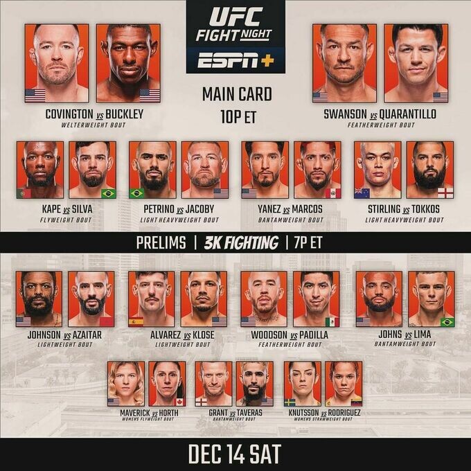 Бакли наверняка и мечтать не мог, что получит под Новый год такой подарок: вместо Иена Гэрри, с которым он должен был драться, против него выйдет сам Колби Ковингтон. Конечно же, это куда более именитый боец, чем Гэрри, и потому бой с ним привлечет больше внимания.
