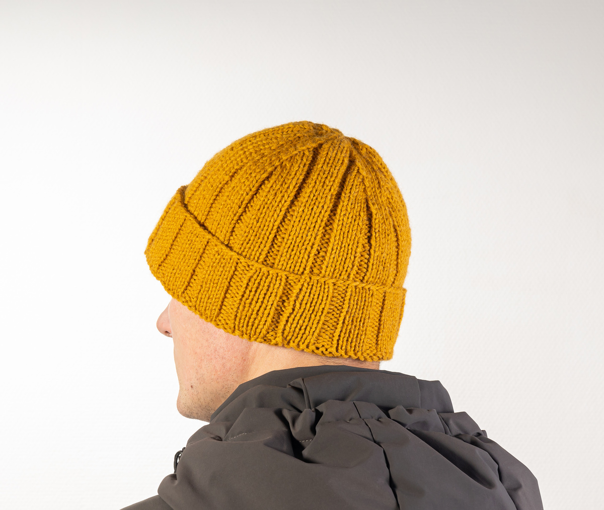 Подробное описание вязания Мужской шапки с фиксированным отворотом! Для вязания я использовала пряжу ALIZE Lanagold 800, цвет 645, длинна 730 метров в 100 гр., 49% шерсть, 51% акрил в 4 сложения, получается толщина 180 м в 100 гр. Также для вязания понадобится: спицы № 3.5 круговые 40 см 2 шт, трикотажная игла, крючок. Шапка связана на размер 54/56. Ширина шапки 52 см, высота отворота 6,5 см, высота шапки 21 см. Плотность вязания в 10 см 18 петель и 23 ряда. Размер можно увеличить или уменьшить, используя спицы большего или меньшего диаметра, так же можно взять пряжу меньшей или большей толщины. Главное, что шапка вяжется из 96 петель. Для вязания на спицы № 3.5 длина лески 40 см. набираем 97 петель, 96 для вязания кокетки и 1 петлю для замыкания вязания в круг. Вешаем маркер начала ряда. Рапорт узора состоит из 6 петель: 4 лицевых, 2 изнаночных. Всего в 96 петлях 16 рапортов. Вяжем по кругу 15 рядов 16 ряд все петли изнаночные. В 17 ряду переворачиваем вязание на изнаночную сторону и