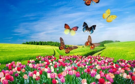 Слышалось пение птиц и негромко звучала красивая, напевная мелодия, улавливалось, чуть слышное журчание ручья. Над поляной с цветами, порхали необыкновенной красоты, крупные бабочки. Я ощущала мир и покой.
