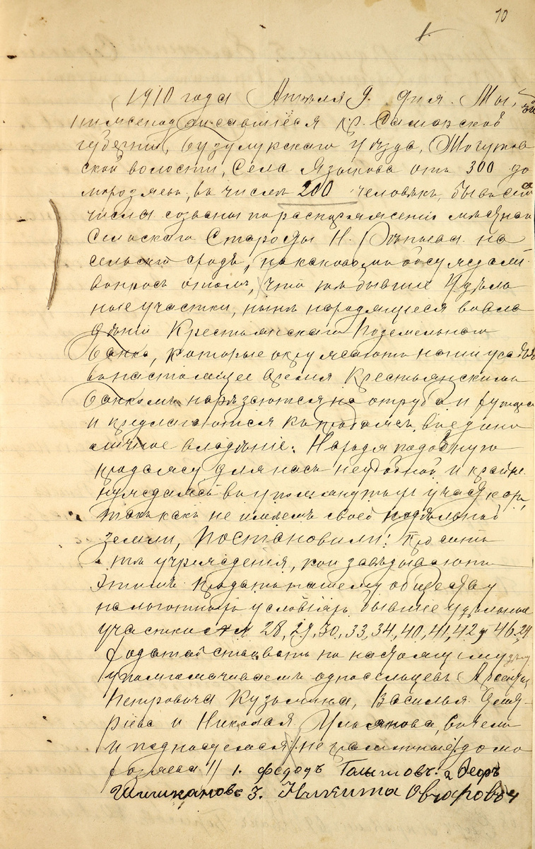 Мне повезло с еще одним документом из прошлого.(ЦГАСО фонд 6,опись 1,дело 606) . Тяжба крестьян с удельным ведомством и крестьянским поземельным банком длиться уже пять лет!Начало истории тут Не сдаются языковцы, очень хотят выкупить землю именно Обществом.И здесь обнаружился приговор сельского схода, все о той же, многострадальной проблеме. О земле. ЦГАСО ф.6оп.1.д.606.Настоящие документы начала 20в. и настоящие подписи крестьян. Листайте галерею Банк стоит на своем. Выкупайте землю, пожалуйста- единолично, или товариществом. Уже прошла столыпинская реформа, она направлена как раз на разрушение крестьянской общины. Крестьянам новые веяния вероятно непонятны, разрушение привычной общинной жизни внушает страх наверное. Совет банка участок около села решает придержать, переселенцам не продавать. На следующем заседании управляющий докладывает- темные они, счастья своего не видят. Землемеров побили, по селу слухи распускают , что землю скоро и так дадут, а тех, кто р