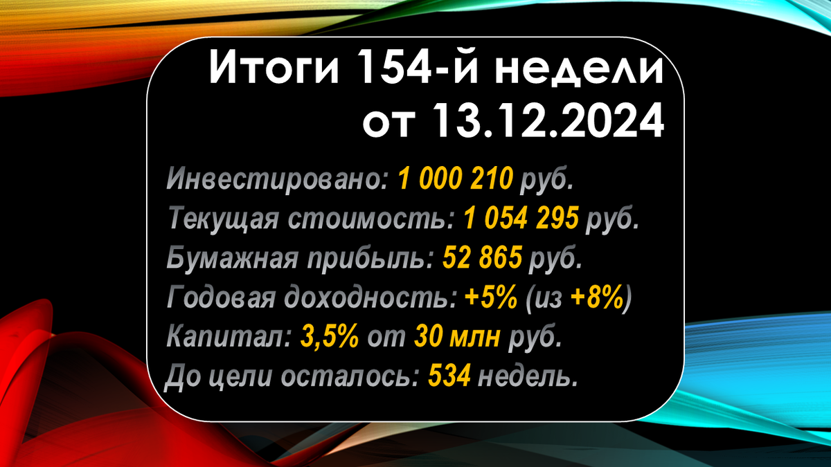 Итоги 154-й инвестиционной недели (рост портфеля:🔻-3`028 руб. за нед.)
