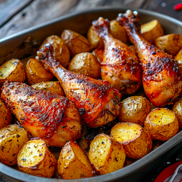 Запеченная курица с картофелем — это классическое блюдо, которое приятно удивит вас простотой приготовления и насыщенным вкусом. Оно идеально подходит как для уютного семейного ужина, так и для праздничного стола. Важно отметить, что все ингредиенты доступны и бюджетны, а процесс приготовления не займет много вашего времени. - Курица (бедра, голени или грудка): 1 кг - Картофель: 1 кг - Чеснок: 4 зубчика - Оливковое масло: 50 мл - Паприка: 1 чайная ложка - Смесь итальянских трав: 1 чайная ложка - Соль и свежемолотый черный перец: по вкусу - Лимон: 1 штука - Свежая петрушка: для украшения 1. Подготовка ингредиентов: - Начните с подготовки курицы. Если вы используете куриные бедра или голени, рекомендуется удалить лишнюю кожу и жир. При использовании грудки разрежьте её на крупные куски. - Картофель очистите и нарежьте крупными кусками. Мелкий картофель можно оставить целым или разделить пополам. 2. Маринад: - В большой миске смешайте оливковое масло, сок одного лимона, измельченные зубчи