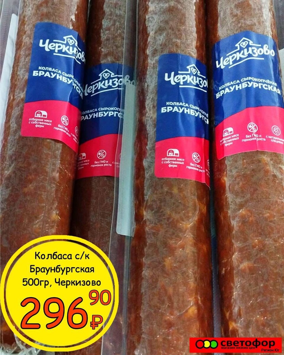 Известная фирма теперь и в Светофоре. Для сырокопченой колбасы это очень дёшево. Ну на домашнюю она мало похожа, конечно, но неплохая. Выглядит великолепно. По две палочки сразу. С жиром, но по вкусу не знаю как она. Ну вот эту я бы точно не взяла. А дальше хочу показать вам чистящие, моющие средства. Вот чего чего, а моющих средств, порошка и др. здесь очень много. Что - то типа тепловентилятора.