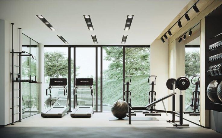 Хожу на тренировки 4 раза в неделю. Не спортсмен, просто люблю много поесть и приходится сжигать калории. Мне удобно, поскольку живу рядом со спортивным клубом и профи тренером. Однако много заказчиков живет за городом в Коттеджных поселках. Там нет ни зала, ни парка, а до ближайшего классного спортивного клуба 1,5 часа по пробкам. Проще тренера пригласить к себе, но где заниматься? В гостиной? Поэтому предлагаю создать спортивный зал у себя в доме. Отличный способ получить идеальное тело не выходя из дома. Проектируем спортивный зал в загородном доме и мотивируем себя на спорт: Так вы чаще будете заходить в зал. А если зашел, значит нужно заниматься. Так вы получите ритуал сбора в спортзал. Одеваетесь, берете сумку с одеждой, выходите из дома, забываете телефон. И все! вы на час на спорте. Также вы получите личную зону где никто вас не побеспокоит. Создайте в нем атмосферу Дзен. Так вы познакомите детей со спортом и проведете время вместе. - Дерево - Камень - Металл