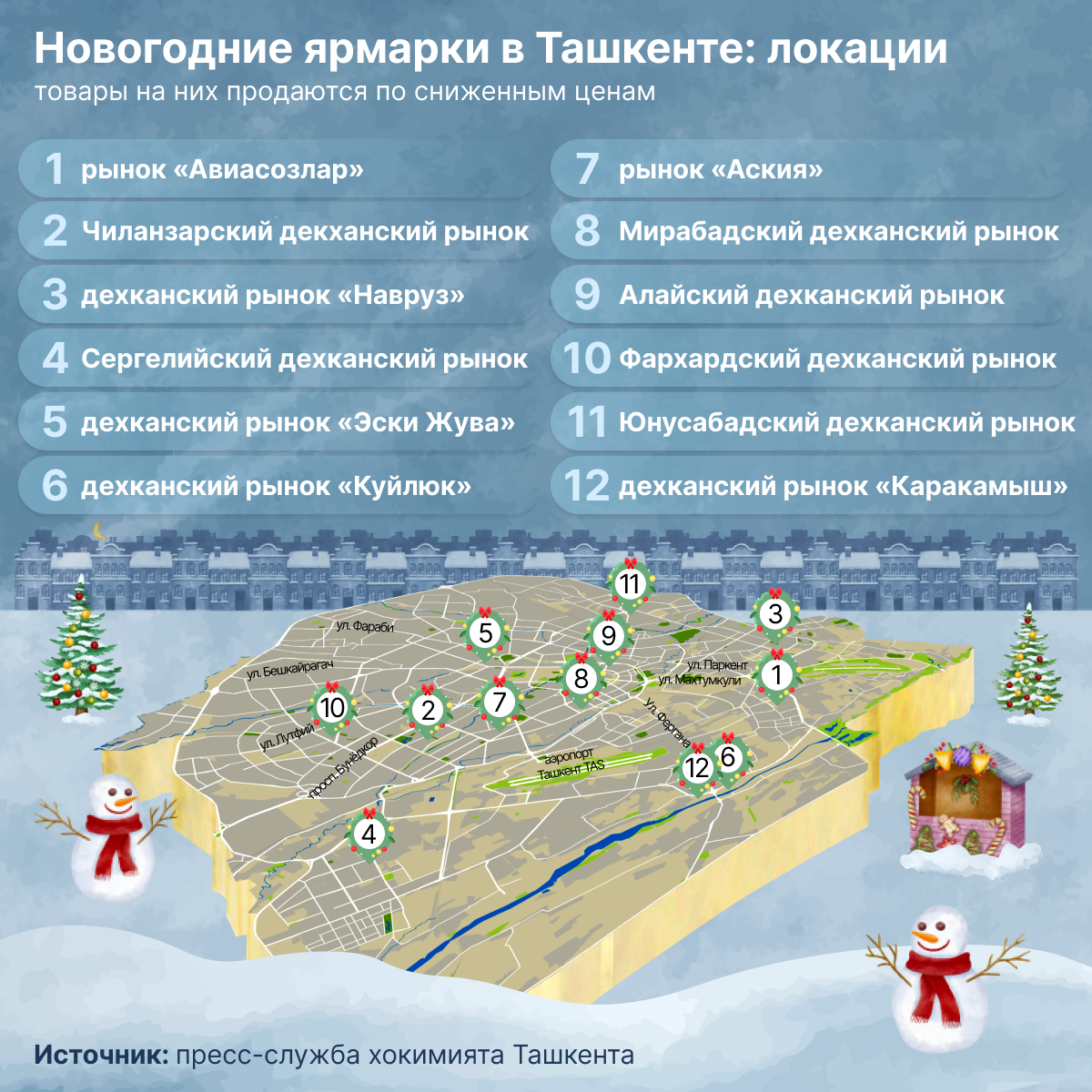 На рынках Ташкента открылись новогодние ярмарки – локации