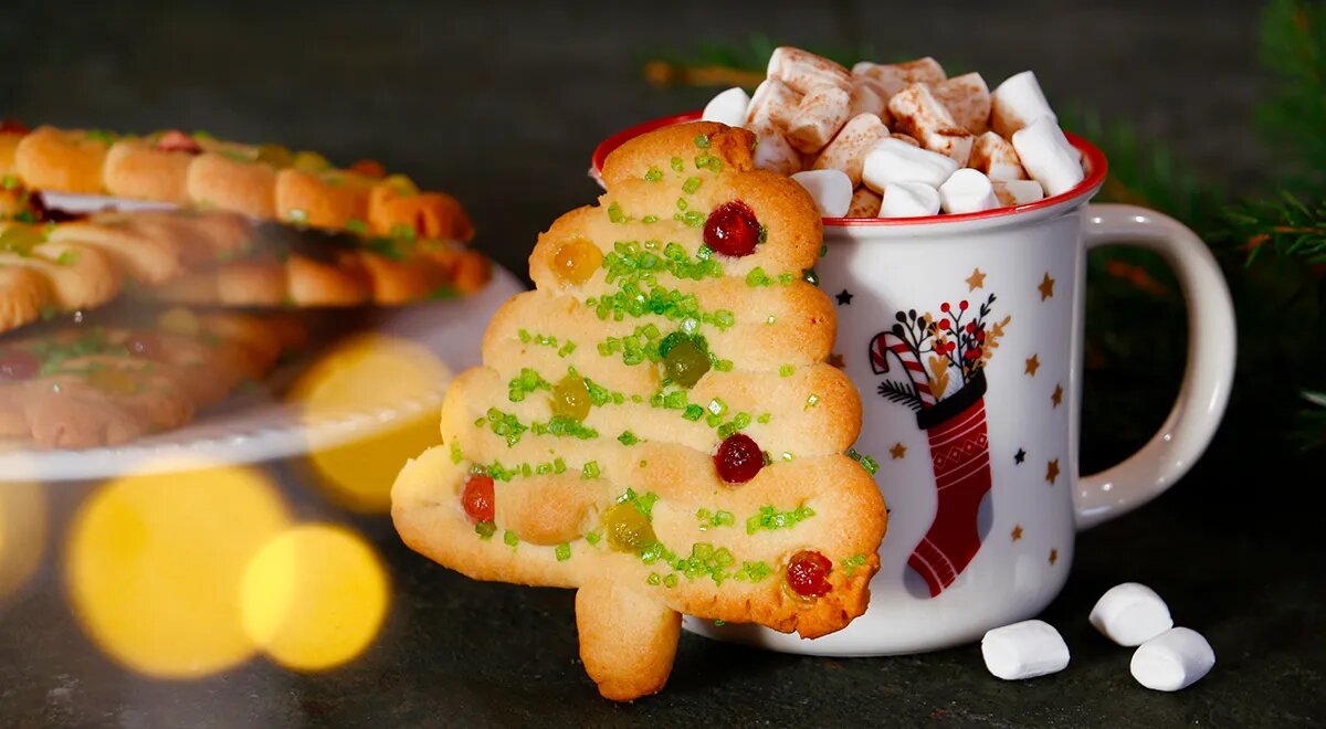 Песочное печенье «Ёлочка» - это простой и эстетичный вариант новогодней выпечки. Для его приготовления не требуются формочки, достаточно умения лепить, как из пластилина. Из мягкого и податливого песочного теста мы будем скатывать тонкие жгутики и формировать из них новогоднюю ёлочку. мука – 560 г разрыхлитель – 7 г соль – 2 г сливочное масло – 340 г сахар – 250 г яйца – 2 шт. ваниль – 5 г миндальный экстракт – 0,5 ч. л. цветное драже зеленая посыпка Соберите все необходимые ингредиенты для песочного печенья «Ёлочка». Разогрейте духовку до 180°C. Просейте муку с разрыхлителем, ванилью и солью в большую миску. Достаньте сливочное масло из холодильника заранее, чтобы оно стало мягким. Переложите его в миску и взбейте с сахаром миксером до получения однородной массы. Продолжая взбивать, по одному вбейте яйца в масляную смесь, добавьте миндальный экстракт и продолжайте перемешивать до равномерного соединения. Постепенно добавляйте сухие ингредиенты в яично-масляную смесь, взбивая после каж