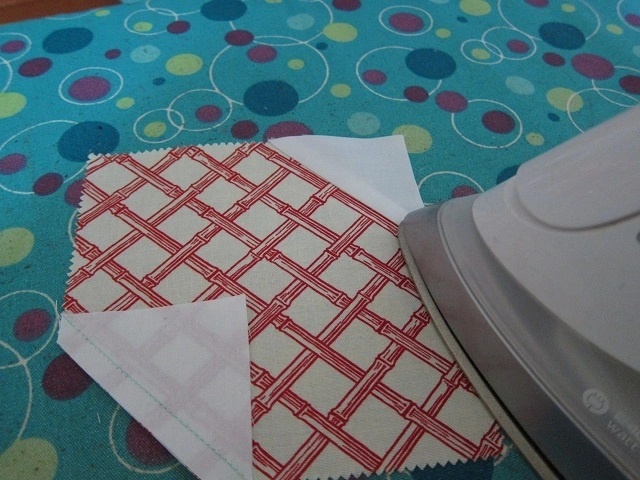 Блоки на самом деле не сложные. Но лоскутное полотнище получается очень эффектным за счет ярких тканей в сочетании с белым цветом. На вырезанных квадратах из пестрой ткани заменяем два противоположных угла на белые уголки. Размер уголков произвольный. Это и есть блок. Нашиваем их в нужном количестве.