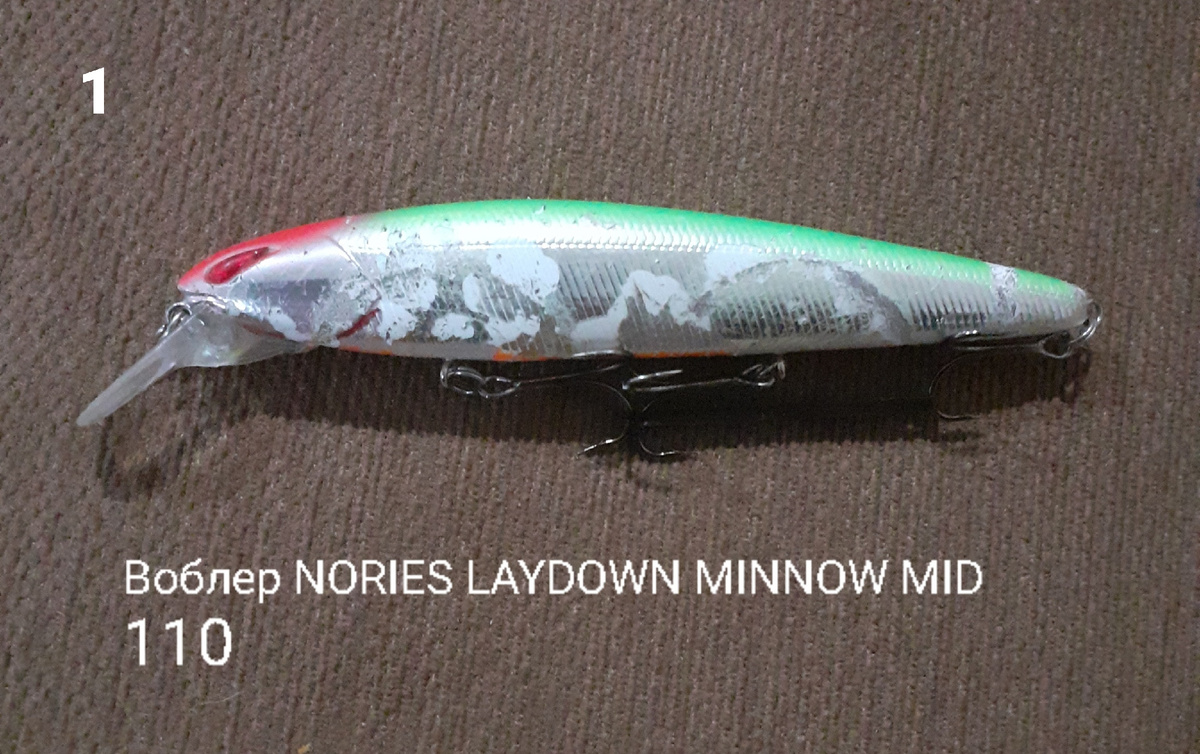 Nories Laydown Minnow MID 110 SP - выручалочка последних двух сезонов. Не зря хочу начать цикл размышлений о воблерах именно с данной приманки. У каждого любителя погоняться за зубастой хищницей имеется в коробке фаворит в который он верит и который приносит результат казалось бы в самое бесклевье, когда в воду летело практически все в разных цветах и размерах. Вот таким для меня стал мой Норрик. Познакомился я с ним, как всегда случайно - приобрел в магазине по внутренним ощущениям, что данный красавчик должен неплохо ловить, а получив от продавца комплимент типа "Да вы гурман" ощущения переросли в убеждения, что это именно то, что я и хотел. Теперь кратко о характеристиках: бесшумный, нейтральной плавучести, заглубление - до 1 метра, вес - 18гр., длина - 112мм. Очередная рыбалка началась именно с него, для многоих знакомо это ощущение, когда обкатываешь новинку и ожидаешь оправдания надежд и......НЕ ПОДВЕЛ. Зубастая атакует как только он появляется в зоне ее охотничьих уго