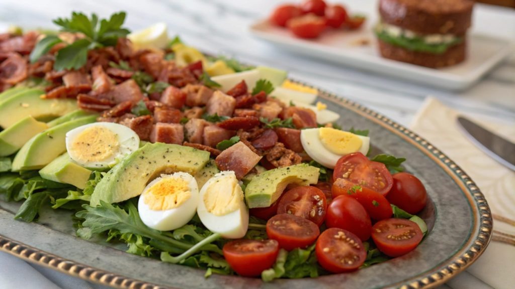 Салат с беконом, яйцом и авокадо