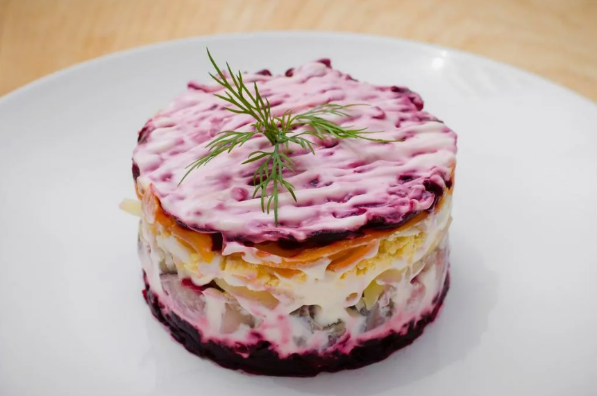• Пятый слой: свекла, равномерно промазанная майонезом.