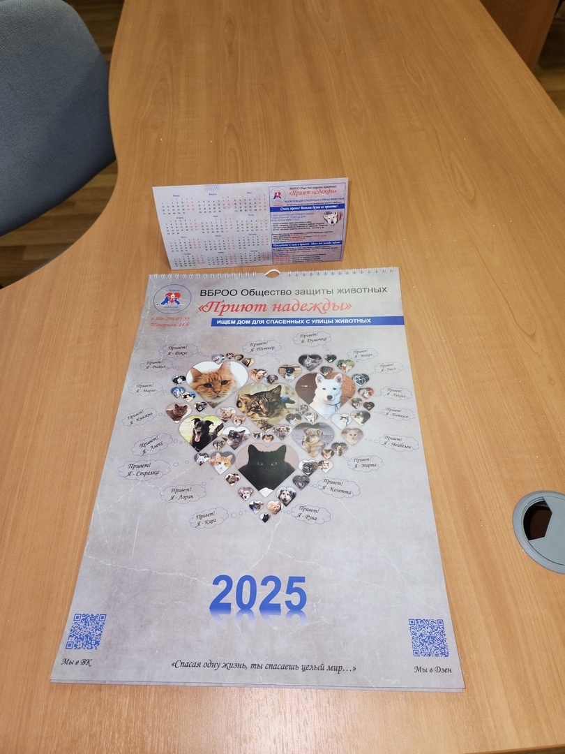 Приветствуем все читателей нашего доброго канала🖐! Осталось две недели до самого доброго праздника "Нового года"🎄 и 3 недели до самого светлого праздника "Рождества Христова". И это время, когда всем нам хочется верить в чудеса, в исполнение наших желаний, в то, что Новый год подарит нам что-то новое, доброе, светлое, что-то, что изменит нашу жизнь к лучшему. И это как никогда актуально в отношении наших подопечных. Ведь каждому из хвостиков🐕🐈 приюта так необходимо это чудо, необходимо, чтобы их жизнь наконец изменилась и они обрели любимого хозяина и настоящий дом. Поэтому в преддверии замечательных праздников мы решили запустить акцию "Добрый календарь!". Нами разработаны календари на 2025 год, которые рассказывают о нашем приюте и наших животных. Большой настенный календарь А-3 формата: очень красивый, выполнен на плотной глянцевой бумаге. Каждая страница календаря содержит фото собаки или кошки, подопечных приюта, а также ссылку на его историю в нашем канала. Календарь приятно