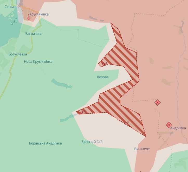 Оскольский фронт: 1. Противник в вечернем обновлении карты нарисовал нам охват Лозовой с севера 2. Кроме того фиксируется продвижение западнее Зеленого Гая 3. Отдельно стоит упомянуть плацдарм за Осколом. Противник заявляет, что наши смогли расширить его и зацепить часть Двуречного и выйти к селу Западное. Звучит неплохо, но нужен объективный контроль, чтобы убедиться, что это не 4 ДРГшника как в прошлый раз. Покровский участок: 1. Пришли кадры, на которых фиксируются попытки ВСУ контратаковать в районе Шевченко. Со стороны противника заявляется, что там бросили с колёс какую-то бригаду. Новое руководство пытается показать свою "Потужность". Торецкий участок: 1. Пришло видео из Торецка, наши уверенно развивают успех к северу от Шахты "Центральная" и взяли уже до 500 метров частной застройки и достигнув Житомироского переулка. До северо-западных границ города осталось 1,5 километра. Кураховский фронт: 1. Пришло видео с водружением флага на администрации Курахово, скорее всего, контроль