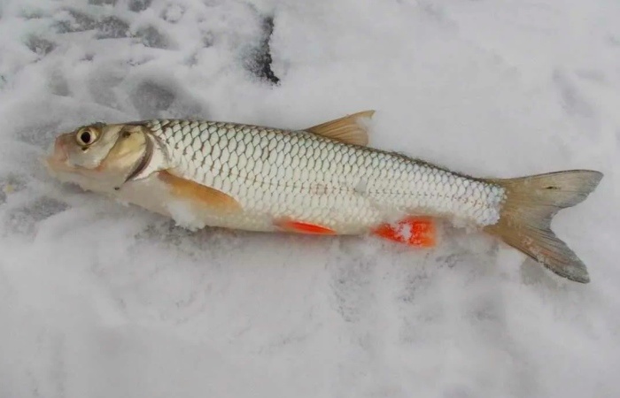 Зимой поклёвка голавля проявляется в резком изгибе кивка или погружении поплавка. Увидев это, сделайте уверенную, но не слишком сильную подсечку. Сначала пойманная рыба будет активно сопротивляться, но быстро устанет и позволит подвести себя к лунке. Если попался крупный голавль, используйте багорик при вываживании.