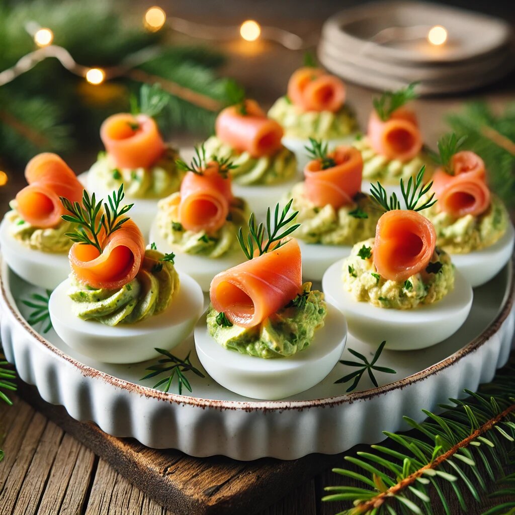 Эта яркая закуска станет украшением новогоднего стола. Лёгкое сочетание сливочного авокадо и нежной красной рыбы порадует гостей. Для более яркого вкуса добавьте в начинку немного чеснока или щепотку копчёной паприки. Вопрос к читателям: