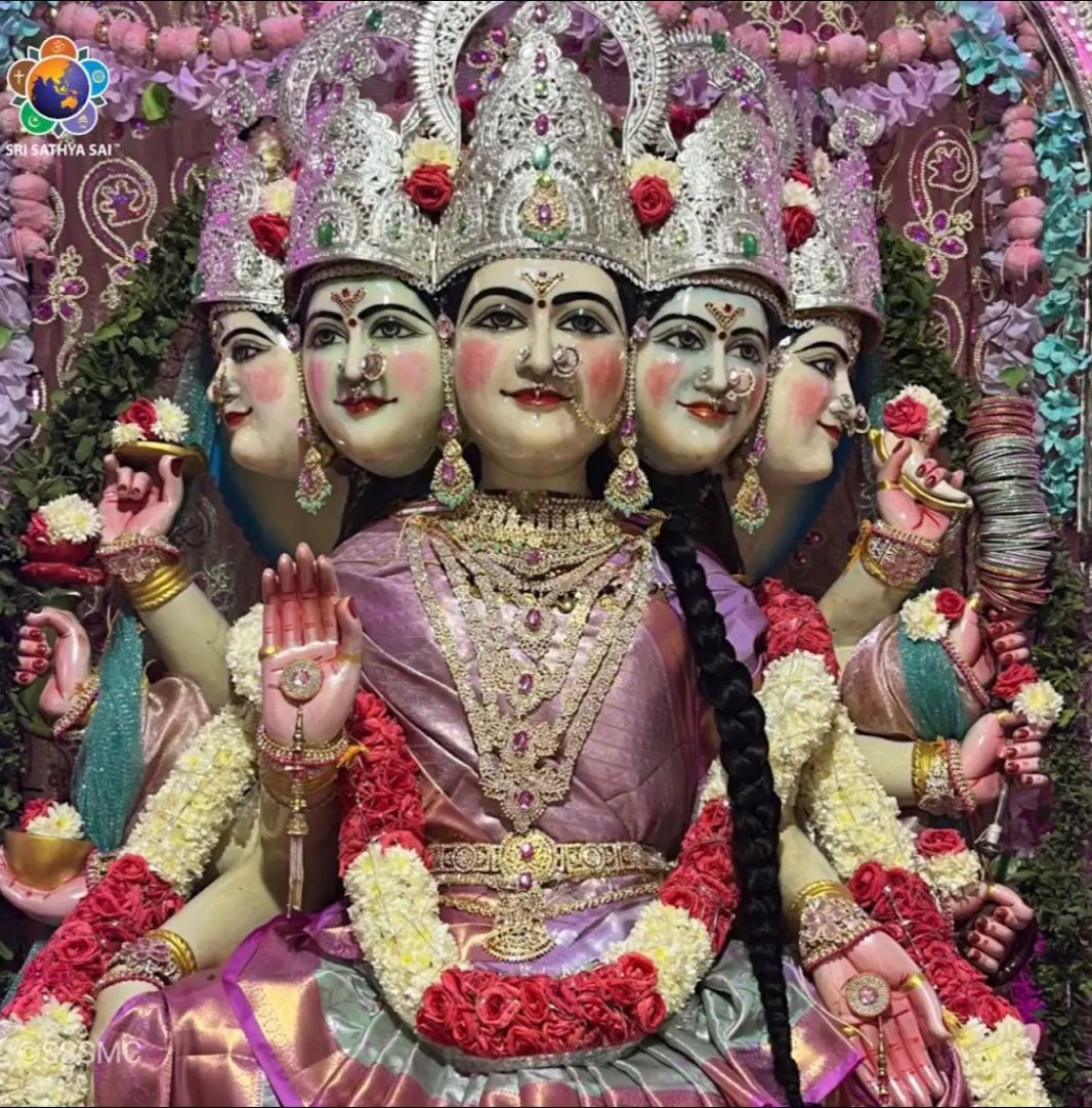 Божественный Даршан Матери Гаятри 🙏 Прашанти Нилаям Гаятри — это универсальная молитва, хранимая в Ведах. Она обращена к Имманентному и Трансцендентному Божественному, которому дано имя «Савита», что означает «то, из чего всё это рождается». Гаятри можно рассматривать как имеющую три части: 1) Поклонение 2) Медитация 3) Молитва. Сначала восхваляется Божественное, затем на Него медитируют с почтением и, наконец, обращаются к Божественному с просьбой пробудить и укрепить интеллект, различающую способность человека. Гаятри считается сущностью Вед. Веда означает знание, и эта молитва способствует развитию и обострению способности к получению знаний. Фактически, четыре основных заявления, запечатленные в четырех Ведах, содержатся в этой мантре Гаятри". Шри Сатья Саи Баба, 20 июня 1977 г.