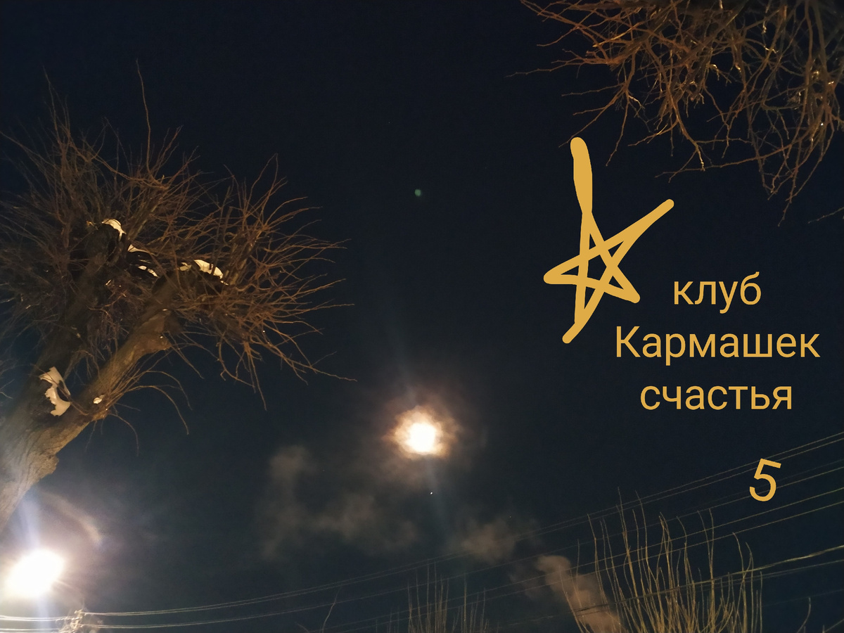 Решение свалилось с неба. Луна, почти полная, очень яркая остановила меня вчера. Минут 15 искала ракурс, точку, чтобы вписать в кадр эти ветви, провода, дымок из трубы обязательно, а крыш чтобы не видно.