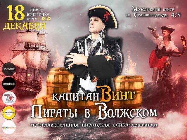 Волжан зовут на захватывающее событие -сайкл-вечеринку. Это увлекательная тренировкана велотренажерах, во время которой участникистанут еще и зрителями театральной постановки "Пираты в Волжском"(18+) от Молодежного Авангардного Театра. Сайкл-вечеринки набирают популярность, становясь настоящим хитом у легких на подъем и активных жителей. Тем более что такой формат позволяет легко совместить любовь к движению, спорту и ярким тусовкам. Театрализованная пиратская сайкл-вечеринка в городе-спутнике Волгограда пройдет 18 декабря. Площадкой, где развернется пиратское действие, станет молодёжный центр парка «Волжский» на улице Сталинградская, 4/5. Старт намечен на 18:30. Организаторыотмечают, что количество мест ограничено, поэтому требуется предварительная запись по телефону 89033737444.