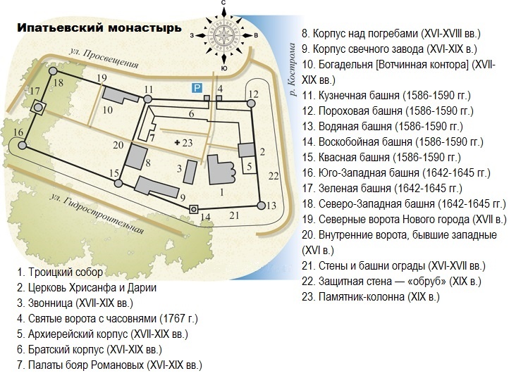В палатах сохранились реликвии времени становления династии Романовых. Когда в 1613 г. в Москве на Земском соборе был избран новый царь, он - Михаил Фёдорович Романов (1596-1645) - жил с матерью в Ипатьевском монастыре. Посольство бояр приехало сюда из Москвы просить его взойти на престол. Царю при коронации не исполнилось 17 лет.