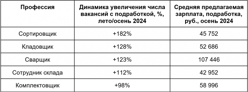 С приближением новогодних праздников работодатели активно открывают вакансии для временной работы и подработок. По данным аналитиков, в осеннем сезоне 2024 года число таких вакансий увеличилось на 23 % по сравнению с летом этого года. Некоторые категории специалистов стали особенно востребованными: спрос на сортировщиков вырос в 2,8 раза, а на кладовщиков и сварщиков — более чем вдвое. Средняя зарплата сортировщиков за неполный рабочий день составила 45 752 рубля в месяц, кладовщиков — 52 686 рублей, а сварщиков — 107 446 рублей. По результатам опроса, 26 % россиян планируют подрабатывать в предновогодний период, а ещё 37 % рассматривают такую возможность. Большинство из них собираются заработать на личные цели, подарки или отпуск. Также работодатели увеличили число вакансий в сферах производства электроники и бытовой техники (+116 %), продажи и управления недвижимостью (+91 %), телекоммуникаций (+76 %), грузоперевозок и логистики (+71 %), а также металлургии (+71 %).