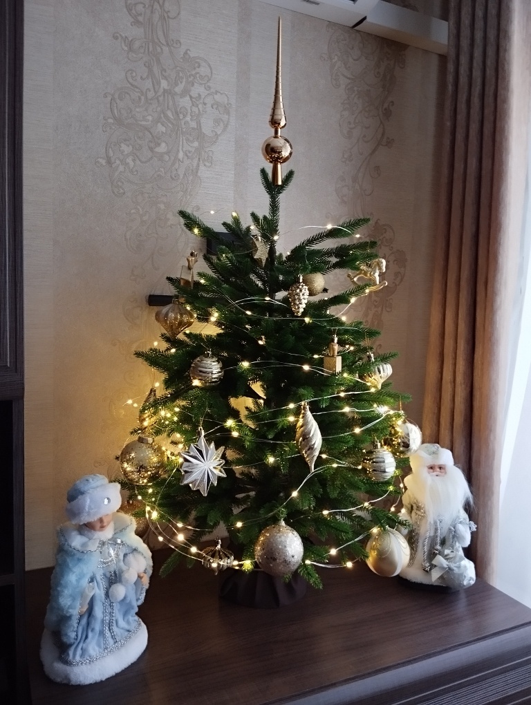 За последние несколько лет изменилось многое, и новогодние украшения тоже. Я была очарована еловыми литыми иголочками, которые выглядят прямо как настоящие. У нас была елка, но я решила купить еще одну, небольшую настольную, с такими иголочками. Очень красиво смотрится. Сейчас ее уже нет в наличии, но таких елок множество, литые иголочки не мнутся, не облетают и не портятся при хранении. К этой елочке я купила гирлянду, на тонких невесомых проводах, с крошечными яркими лампочками. Гирлянда работает от сети, намотана на катушку, ее легко намотать на елку или смотать после Нового года. Использую ее второй год, при хранении ничего с ней не случилось. Много режимов мигания, мы обычно включаем просто постоянное свечение. Арт. 155183185 на ВБ. Провода довольно заметны, к новой елке я купила гирлянду на зеленых проводах. Вот их не видно на зеленых ветках. Арт 266781939. Я люблю составлять разные композиции и букеты с ветками, и мне нужно украсить камин, поэтому я заказала несколько видов вето